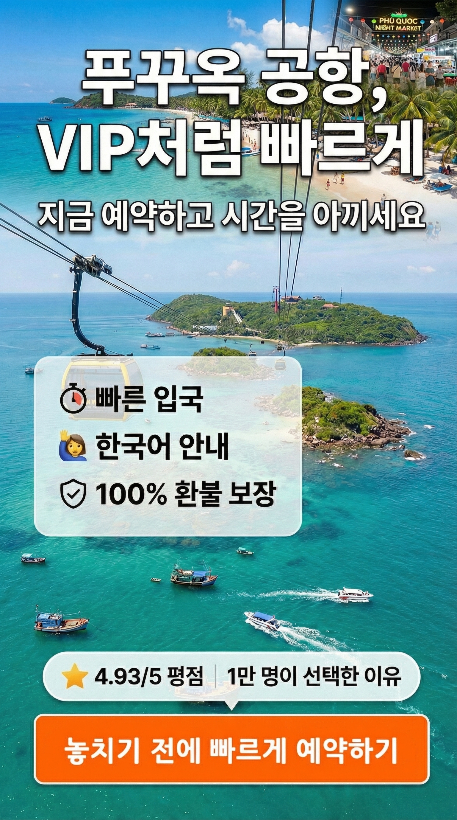 비행으로 인한 피로를 최소화하고, 푸꾸옥에서의 즐거운 시간을 한시라도 빨리 누리고 싶다면 브이몽샵 패스트트랙이 정답입니다!