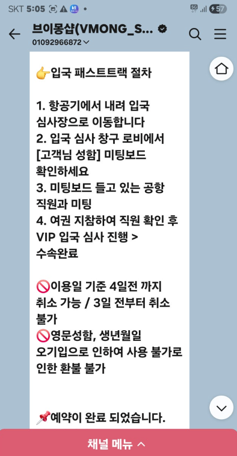 그래서 이번 여행에 그 때 눈여겨 봐둔 브이몽샵으로 예약했어요. 가격도 제일 착한 가격이었고, 결제하자아자 카톡으로 연락이 와서 편했어요.