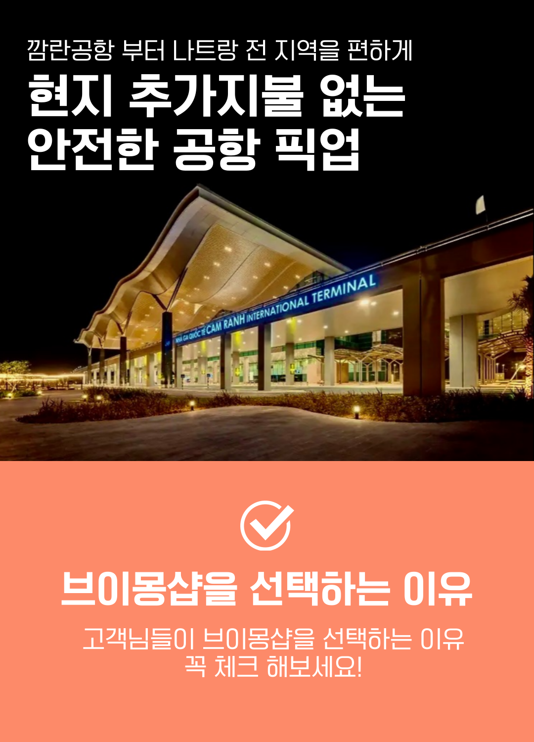 나트랑 공항에서 숙소까지 안전하게 이동을 도와드립니다.