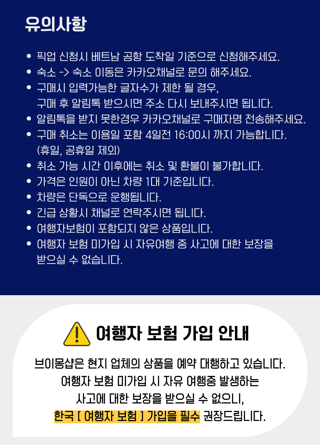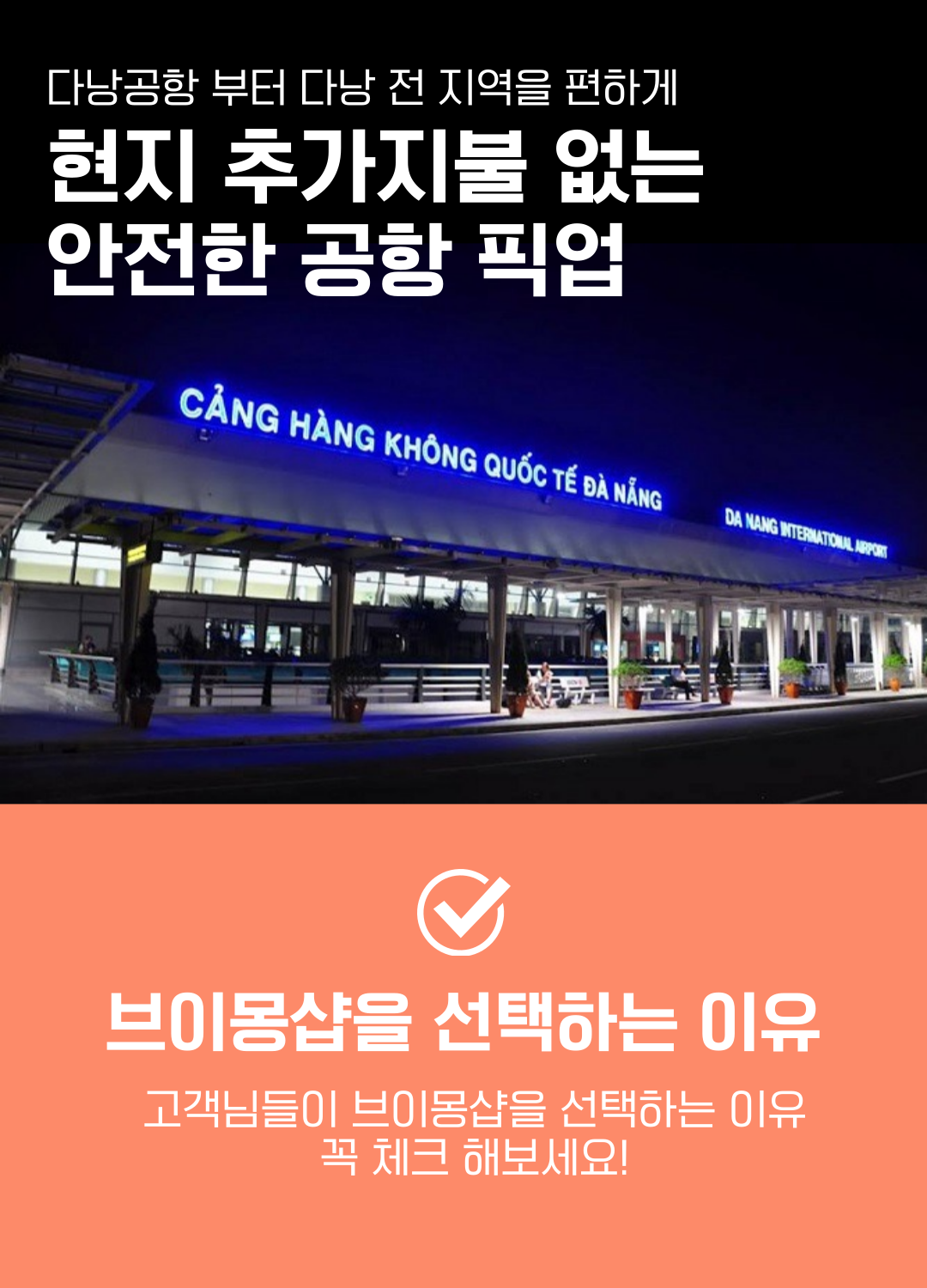 다낭 국제공항에서 숙소까지 안전하고 편리하게 이동 도와드립니다.
