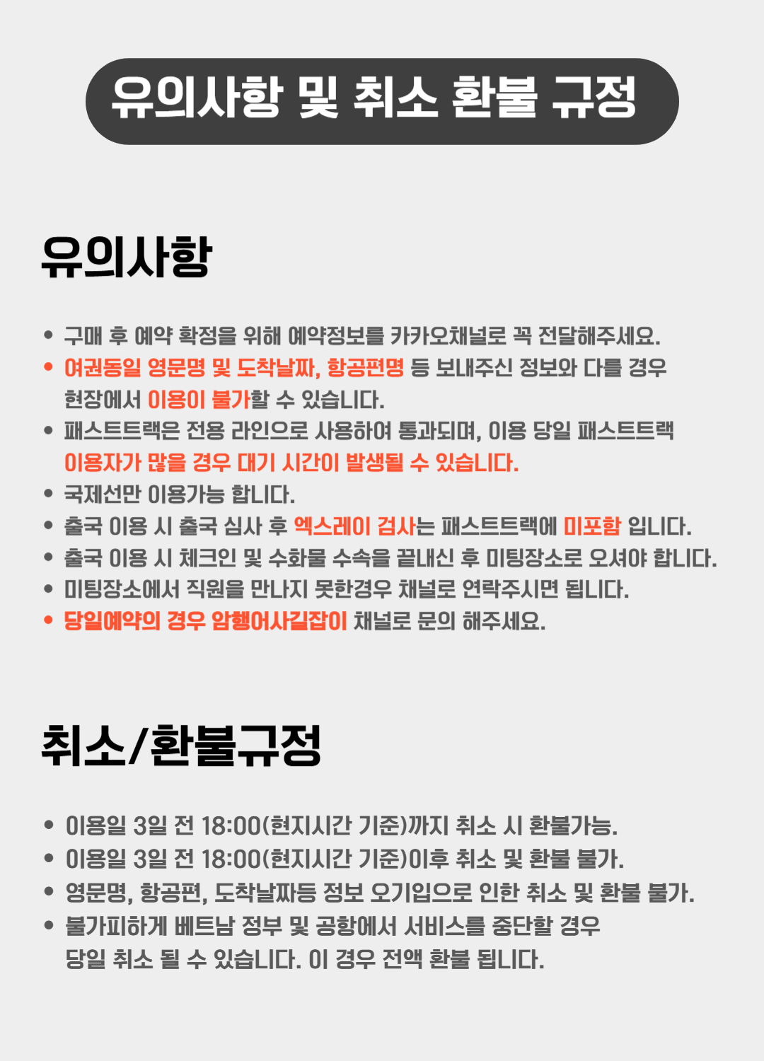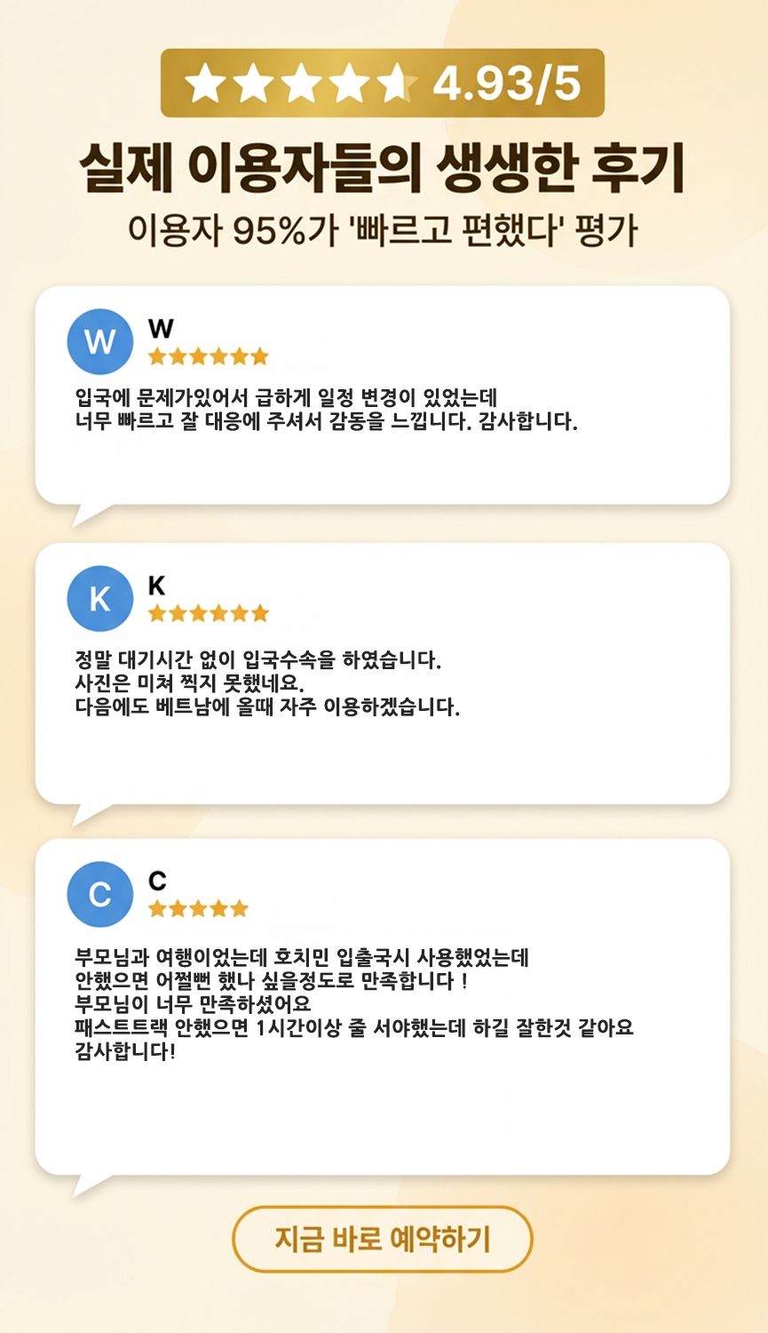 - 패스트트랙은 호치민 국제공항 도착 후 이미그레이션을