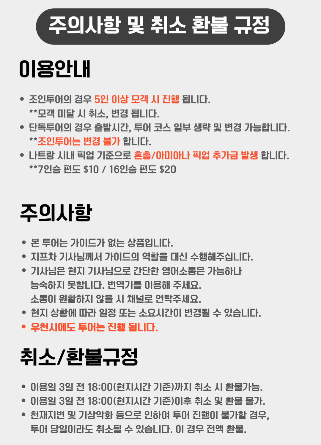 취소 및 환불 규정은 하단 안내 이미지를 꼭 확인해 주세요.