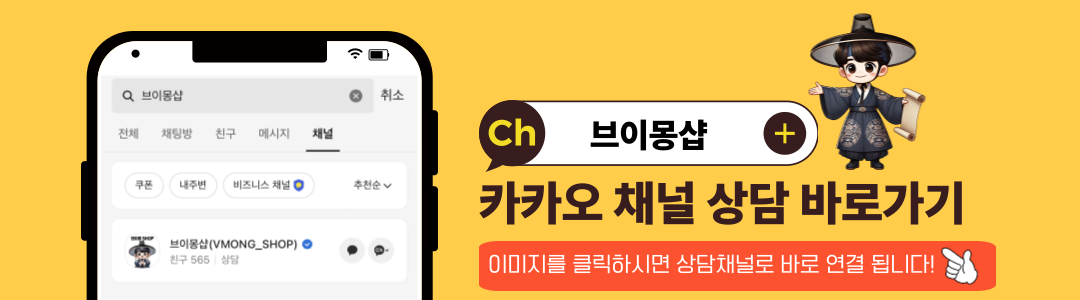 👉 카카오톡 ‘브이몽샵' 채널로 문의해주세요.
