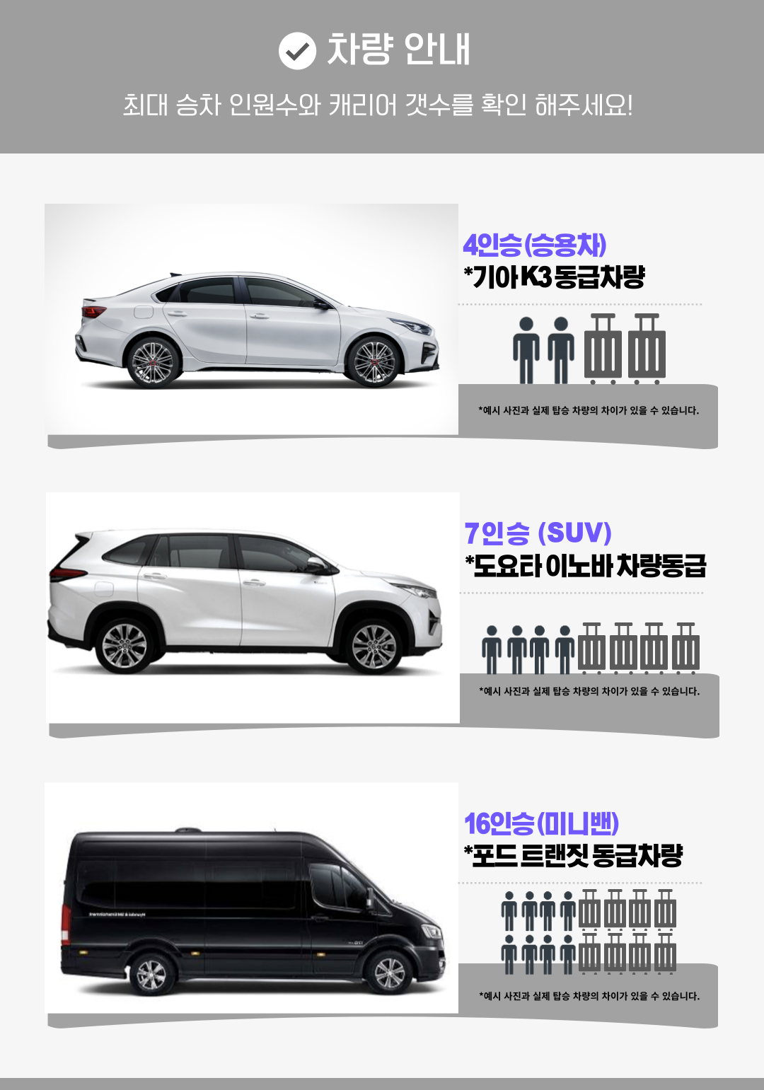 공항 ↔ 숙소 왕복 차량 이용을 원하실 경우