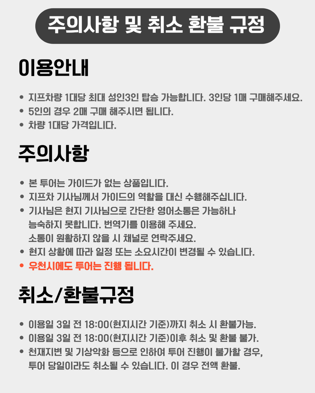 ※ 현지 상황에 따라 일정과 순서는 변경될 수 있습니다.