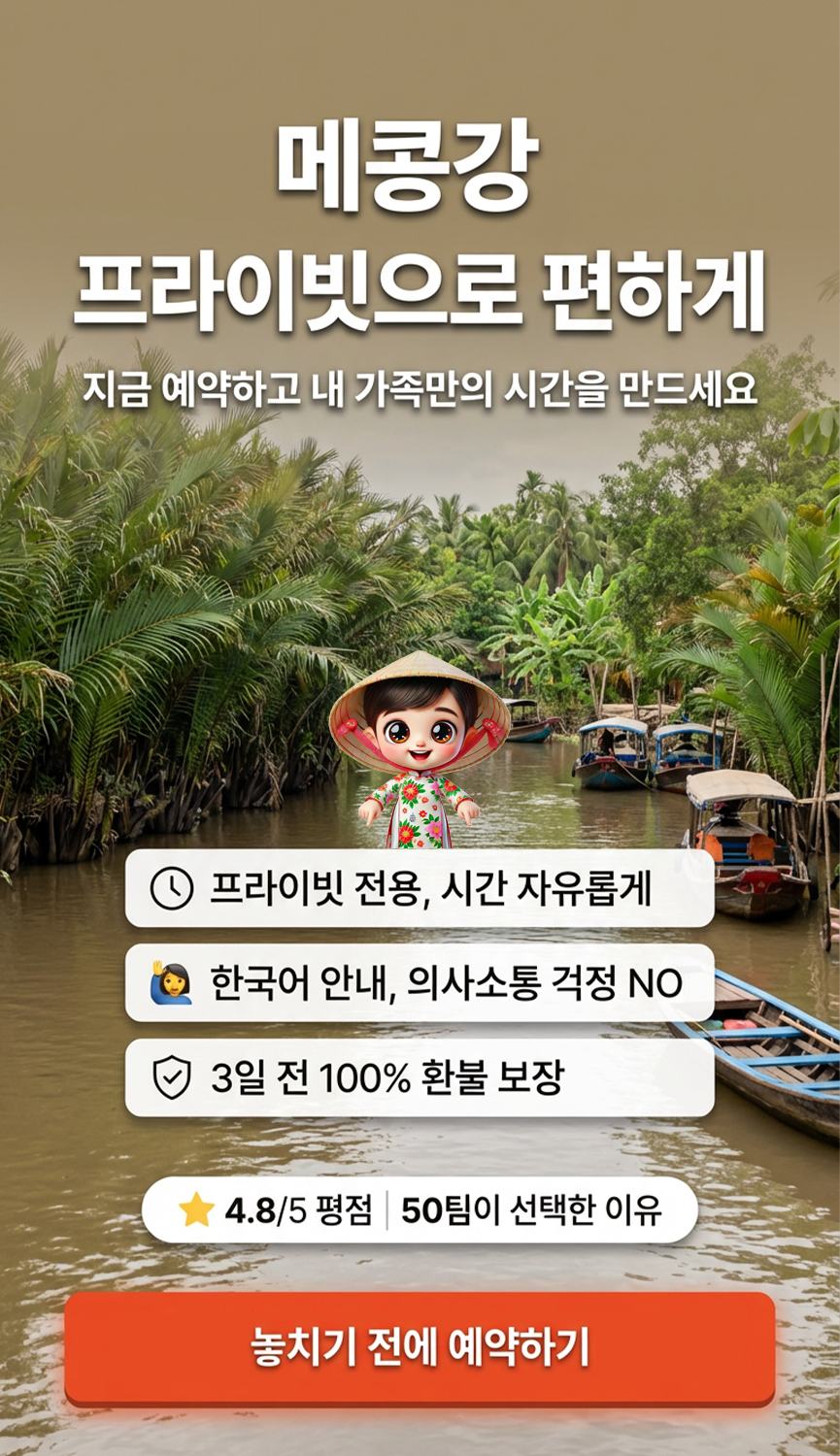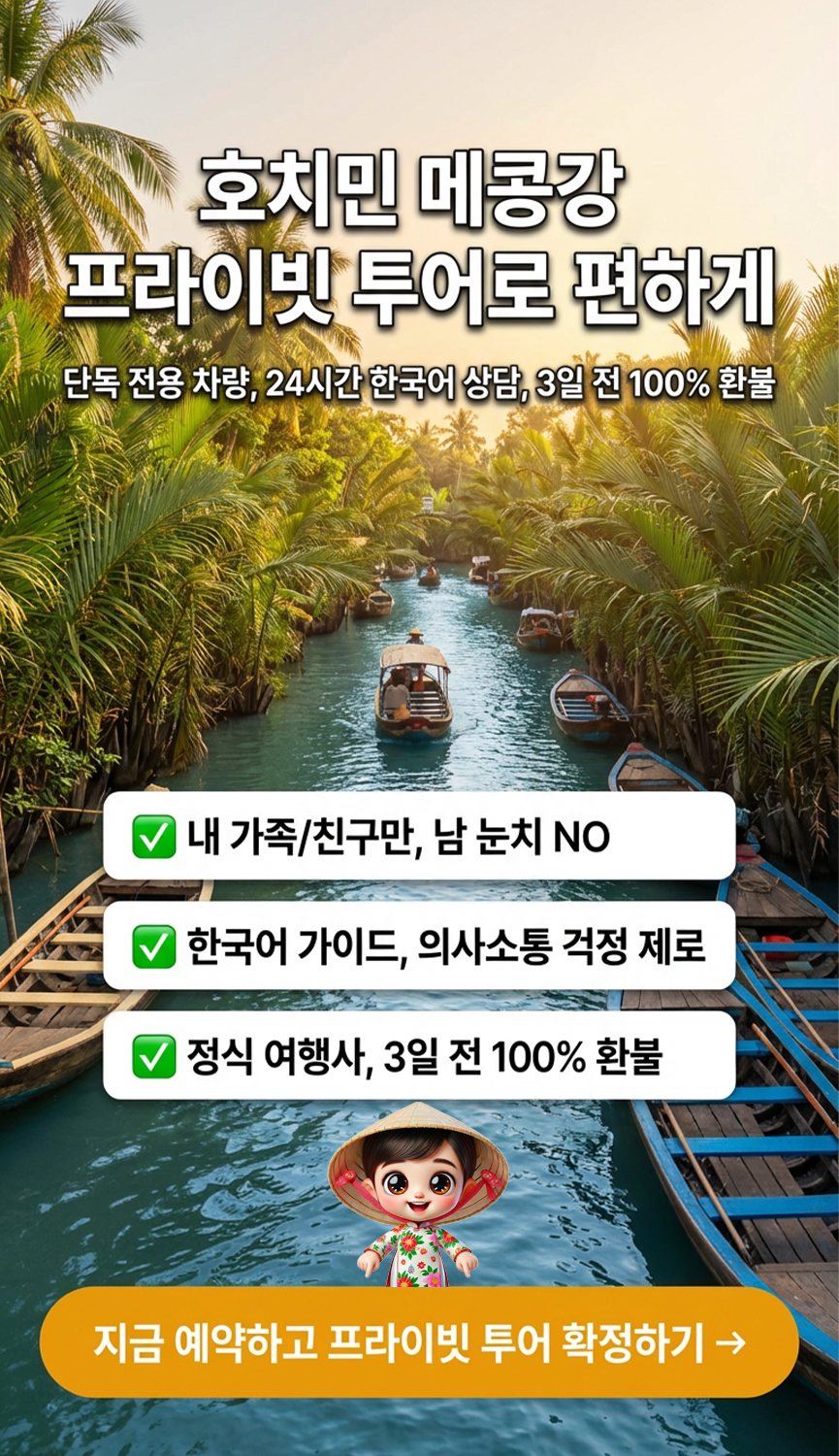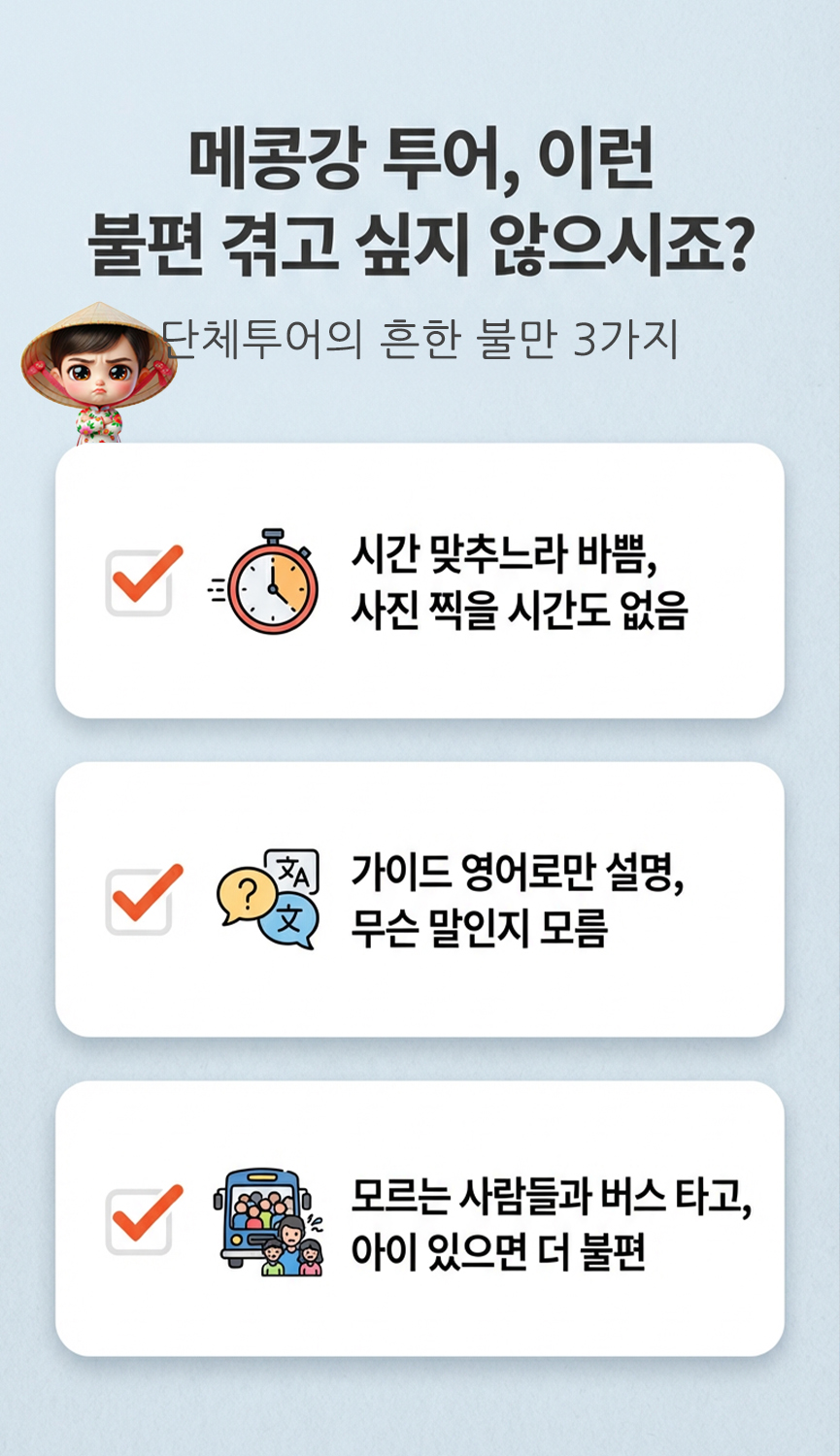 메콩강 델타 투어는 단순한 관광을 넘어, 베트남 사람들의 삶과 자연이 어우러진 모습을 온전히 느낄 수 있는 특별한 하루를 선사합니다.